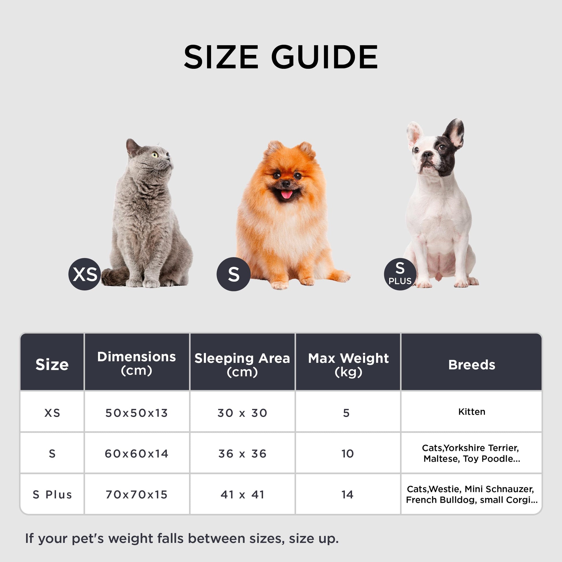 • Wir liefern das Bett für Haustiere in den Größen klein (50 × 50 cm), mittel (60 × 60 cm) und groß (70 × 70 cm).