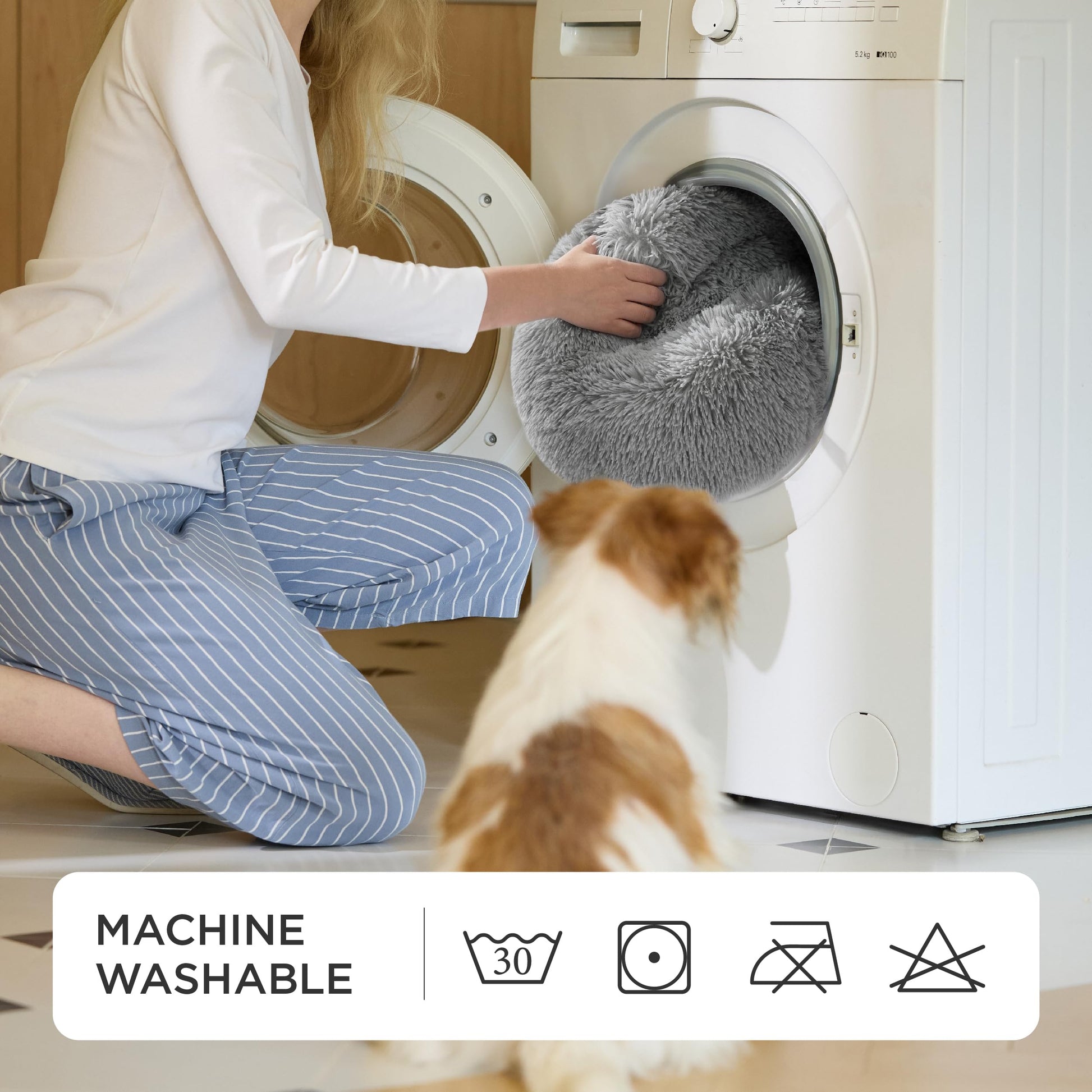 • Dieses beruhigende Haustierbett wurde aus Materialien hergestellt, die nach Standard 100 by OEKO-TEX (24.HCN.46956) zertifiziert sind, und besteht aus geprüften, sicheren Stoffen, die sanft zu Haustieren sind. Der robuste, rutschfeste Boden hält das runde Haustierbett an seinem Platz, sodass Ihr vierbeiniger Freund bequem hinein- und herausspringen kann.
