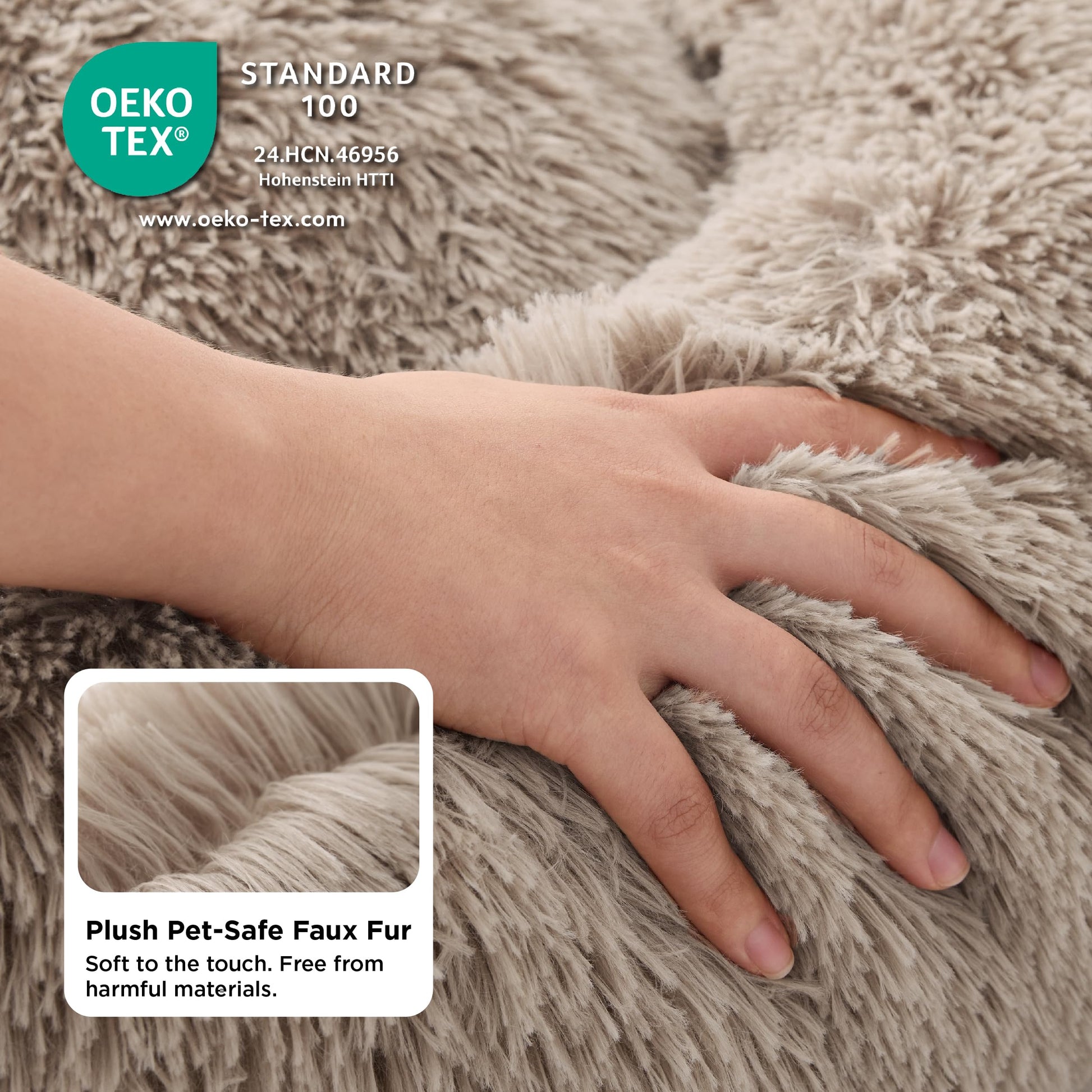 • Dieses beruhigende Haustierbett wurde aus Materialien hergestellt, die nach Standard 100 by OEKO-TEX (24.HCN.46956) zertifiziert sind, und besteht aus geprüften, sicheren Stoffen, die sanft zu Haustieren sind. Der robuste, rutschfeste Boden hält das runde Haustierbett an seinem Platz, sodass Ihr vierbeiniger Freund bequem hinein- und herausspringen kann.